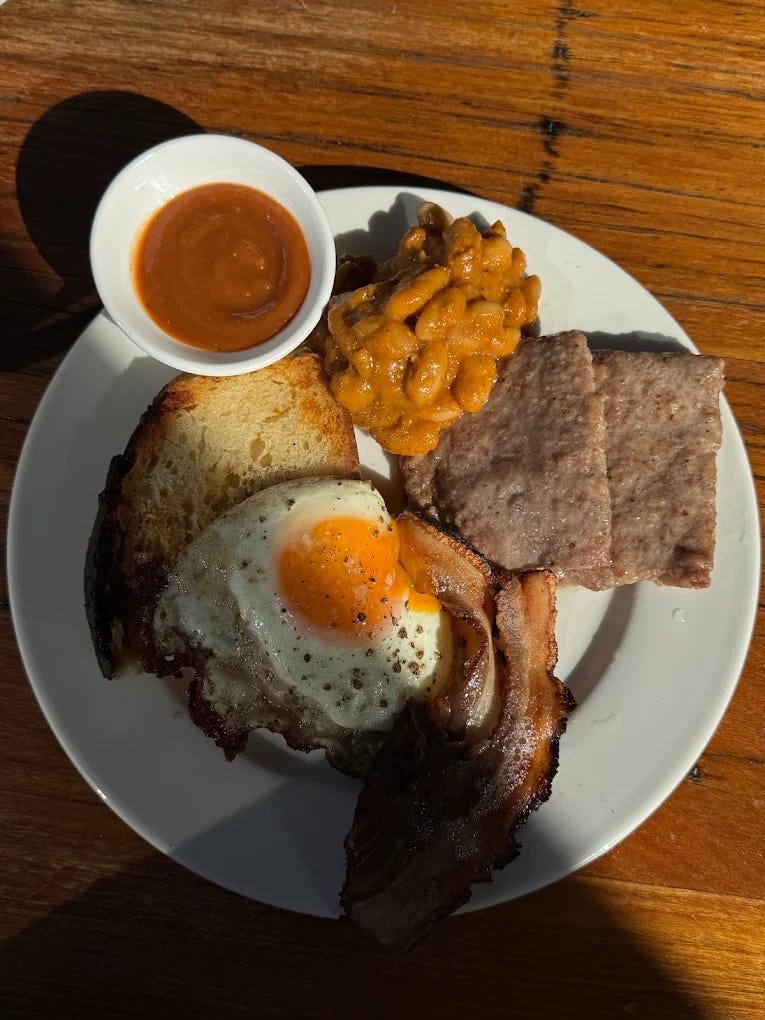 Order: Eggs, toast, and however many sausages Denny (chef/owner) has on offer, with brown sauce and an iced tea. Make sure you ask Denny about his teas, and also take his advice about everything else I guess. His fingers have touched most every crumb. Hope you like Morrissey!