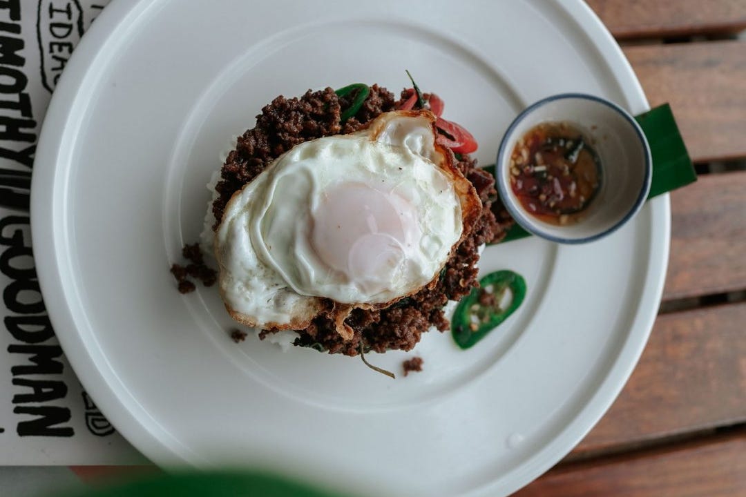 Order: Chicken Grapow with a Fried Egg, the Pork Floss and Chilli Jam Jaffle and for dessert, the corn on toast! For drinks, I always go for a batch brew, then a cold brew, then the escoco which is coconut water with an espresso shot over the top. I always over order here! Haha. But I loveeeeee it. It reminds me of home.