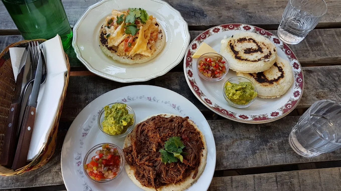 Order: Pulled Beef Arepa with guac and salsa and every mouthful topped with a fresh spoonful of picadillo or chimichurri which exists in infinite amounts in jars on the tables. Oh and add grilled cheese.